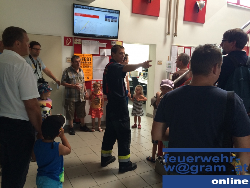 FÜr den Vatertag ließ sich der Kindergarten Nielgasse etwas Besonderes einfallen und so besuchten am Freitag, dem 12.6., 107 Kinder und Väter die Freiwillige Feuerwehr St. Pölten-Wagram.
