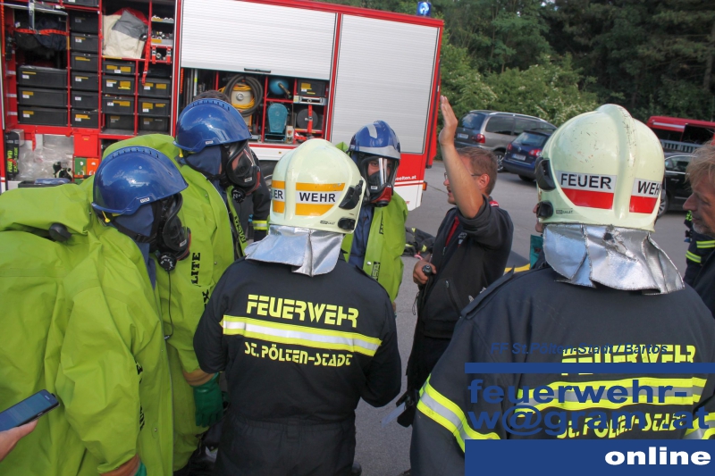 Seitens unserer Feuerwehr rÜckte Zugskommandant Steininger in seiner Funktion als Bezirkssachbearbeiter Schadstoffe nach RÜcksprache mit den eingesetzten Schadstoff-Kräften zum Einsatz aus.