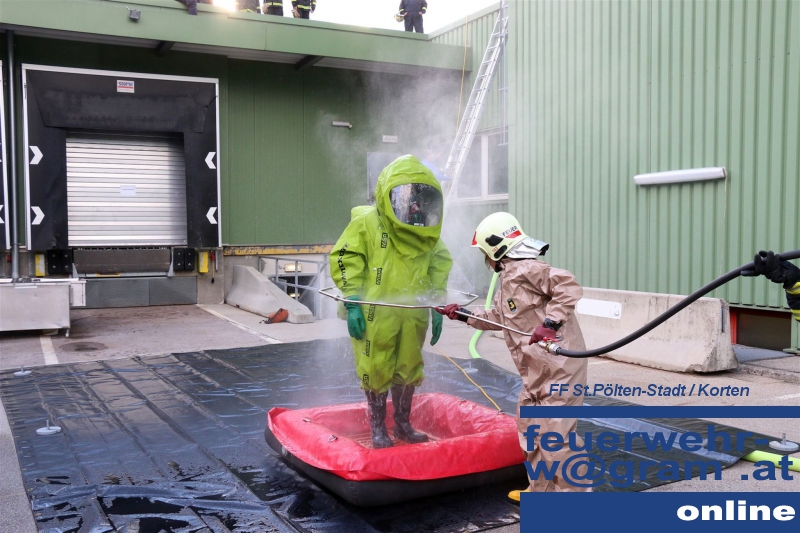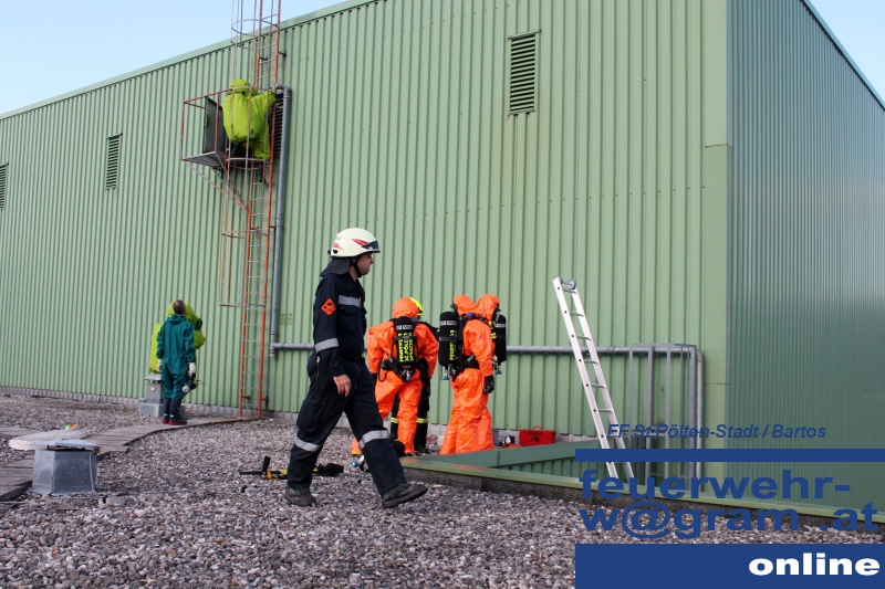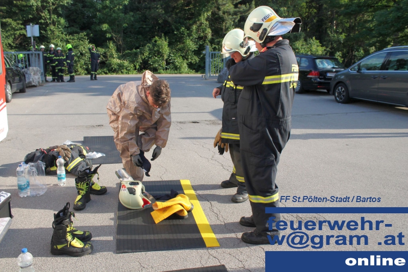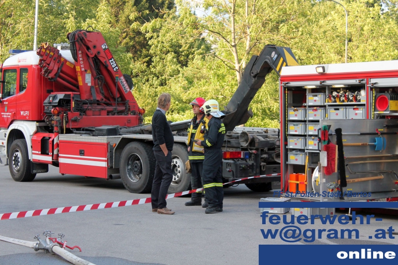 Die Feuerwehren St.Pölten-Stadt und St.Pölten-Spratzern wurden noch während der Abbauarbeiten der Landesfeuerwehrleistungsbewerbe zu einem Schadstoffeinsatz in Spratzern alarmiert. In der Zdarskystraße war es zum Austritt von Ammoniak gekommen.