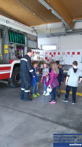 Die dritte Klasse der Volksschule Wagram veranstaltete einen Ausflug zur Feuerwehr St.Pölten-Wagram. Insgesamt waren 21 Kinder und eine Lehrerin zu Besuch.