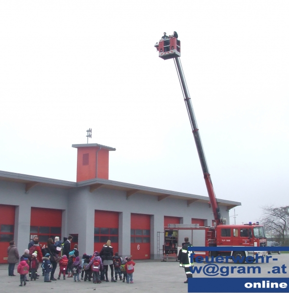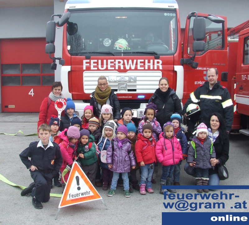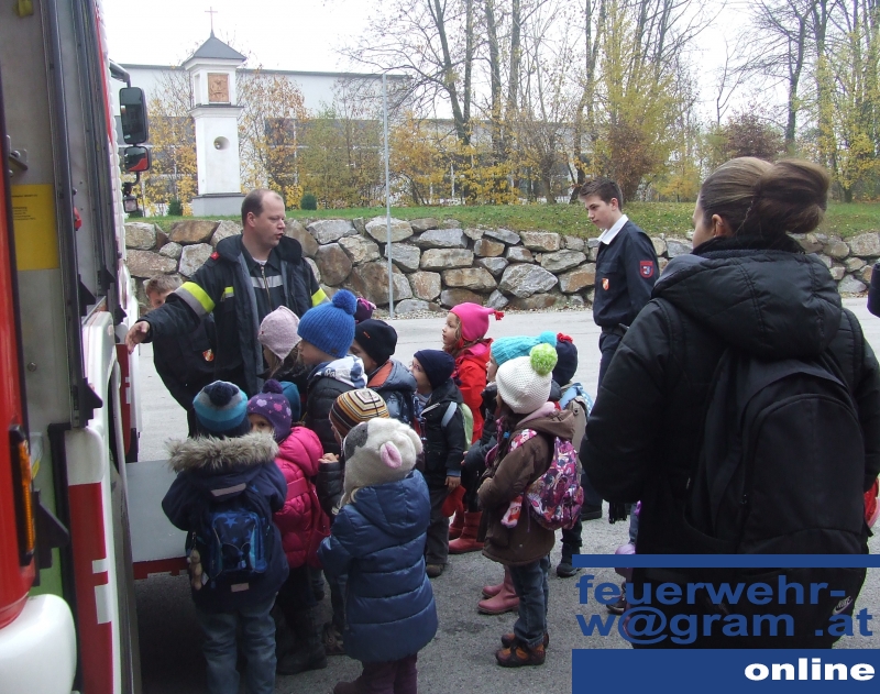Den Landesfeiertag zu Ehren des Hl. Leopold am 15. November nutze der Musikkindergarten "Obere Augartenstraße" aus dem 2. Wiener Gemeindebezirk fÜr einen Ausflug nach St.Pölten. Dabei durfte natÜrlich ein Besuch bei der Wagramer Feuerwehr nicht fehlen. Im Zuge einer FÜhrung durch das Feuerwehrhaus wurde den rund 20 Kids und Pädagoginnen das ehremamtliche Freiwilligensystem erklärt. Nichts alltägliches, werden in Wien doch ein Großteil der Feuerwehreinsätze durch die Berufsfeuerwehr erledigt.