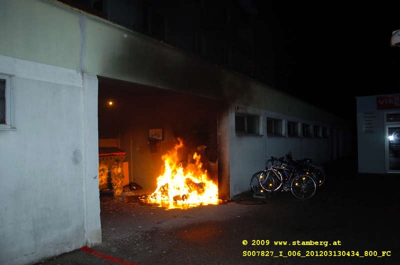 Die Brandserie, die derzeit in St.Pölten wÜtet, hat in der Nacht von 12. auf 13. März 2012 einen weiteren Höhepunkt erreicht. Im Eingangsbereich zweier 11-stöckiger Hochhäuser im Stadtteil Wagram wurden MÜllcontainer in Brand gesteckt.