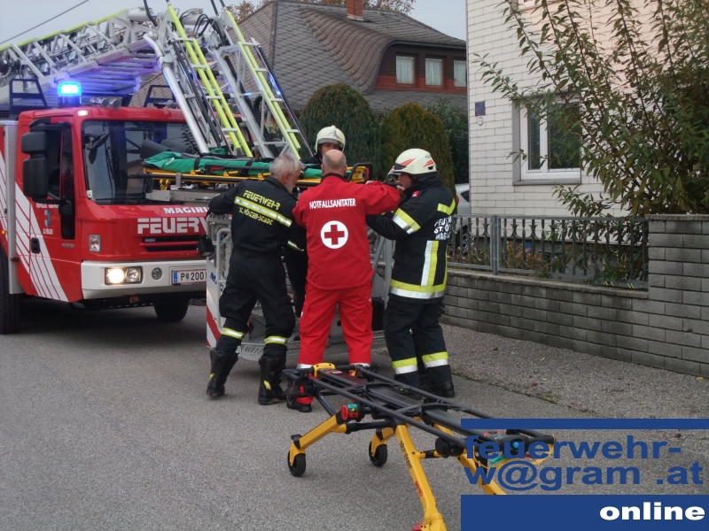 Zur UnterstÜtzung des Roten Kreuzes bei einem medizinischen Notfall wurde die Feuerwehr Wagram (örtlich zuständig) sowie die FF St.Pölten-Stadt mit der Drehleiter am 28.Oktober um 16:48 Uhr gerufen.