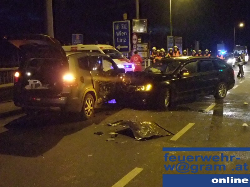 Bereits zum dritten Mal in diesem Jahr kam es am Samstagbend, den 8. Februar 2014, bei der Kreuzung zur Auf-/Abfahrt auf die Kremser Schnellstraße S33 zu einem Verkehrsunfall: Kurz nach 17:30 Uhr wurde die Wagramer Feuerwehrmannschaft, gemeinsam mit dem Arbeitersamariterbund St.Pölten und der Exekutive alarmiert.