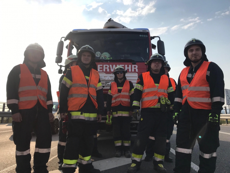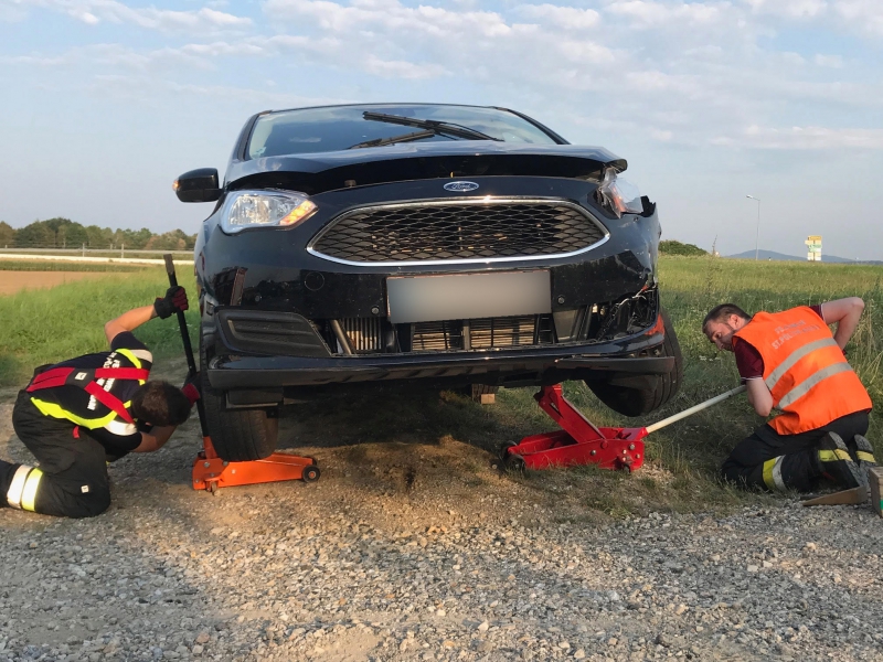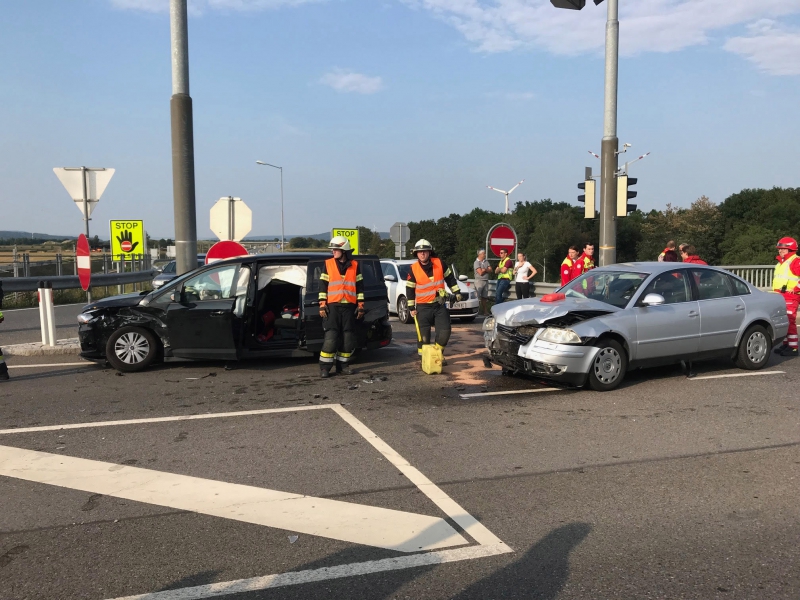 Bei Eintreffen der Feuerwehr galt es die Unfallfahrzeuge zu sichern und die austretenden FlÜssigkeiten aufzufangen, bevor sie Schäden an Straße und Umwelt verursachen konnten. GlÜck im UnglÜck, war die Rettung schnell vor Ort und die Fahrzeuge nur leicht deformiert, womit kein Einsatz des Hydraulischen Rettungssatzes nötig war und sich die Arbeit seitens der Florians nur auf das Absichern der Unfallstelle und der Aufrechterhaltung der Brandschutzmaßnahmen beschränkte.
