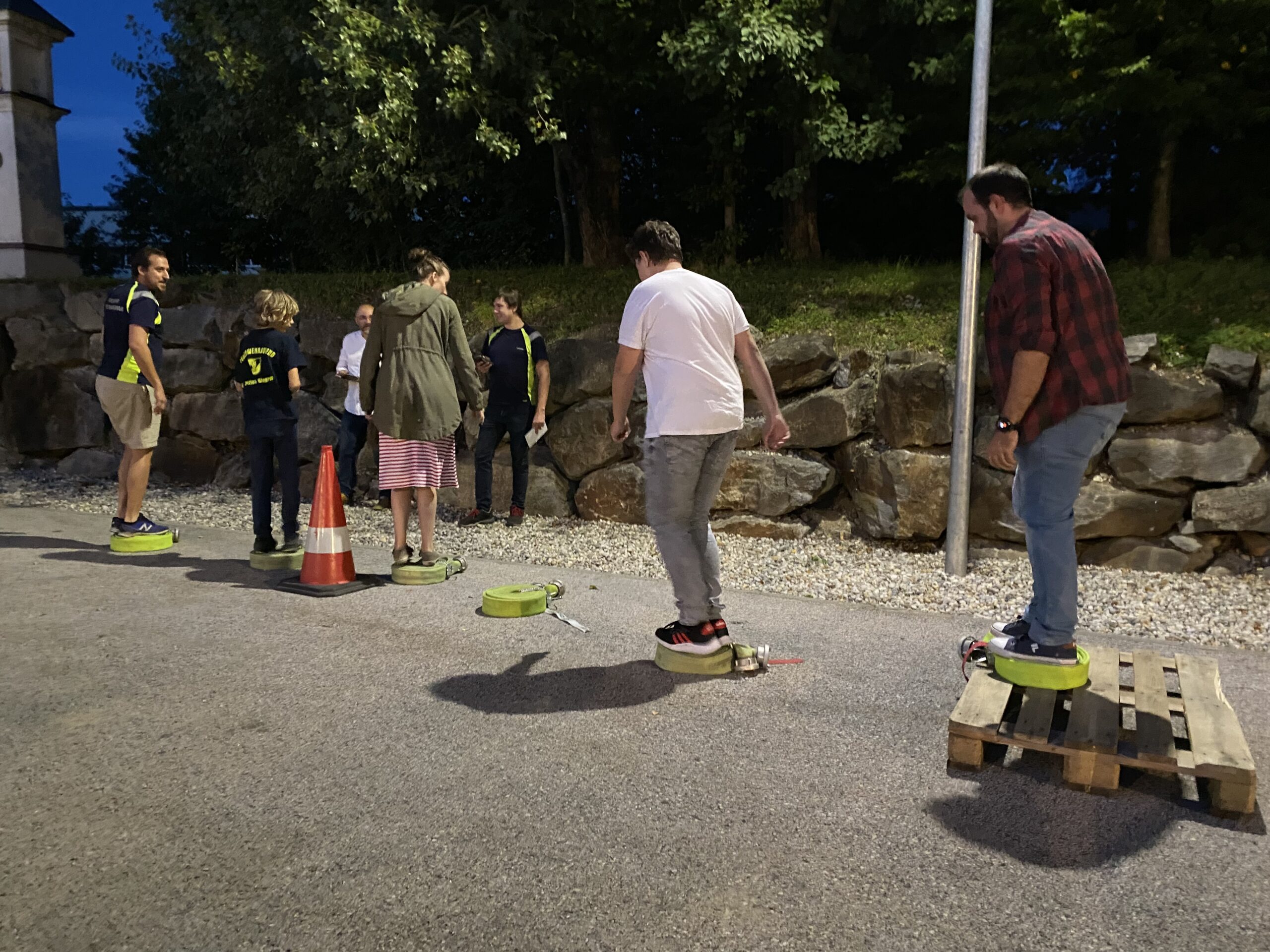 Teamweise wurden dann ein Leinenbeutelweitwurf sowie ein Schlauchparcours absolviert.