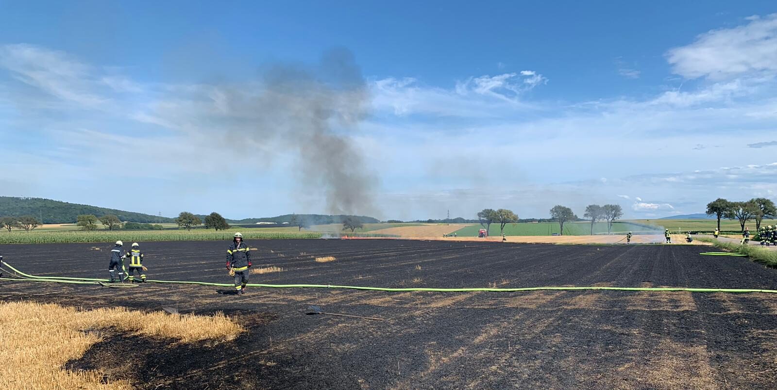 Dank der guten Zusammenarbeit der beiden Feuerwehren und der Landwirte konnte eine Ausbreitung und ein Übergreifen des Brandes auf angrenzende Flächen verhindert werden.