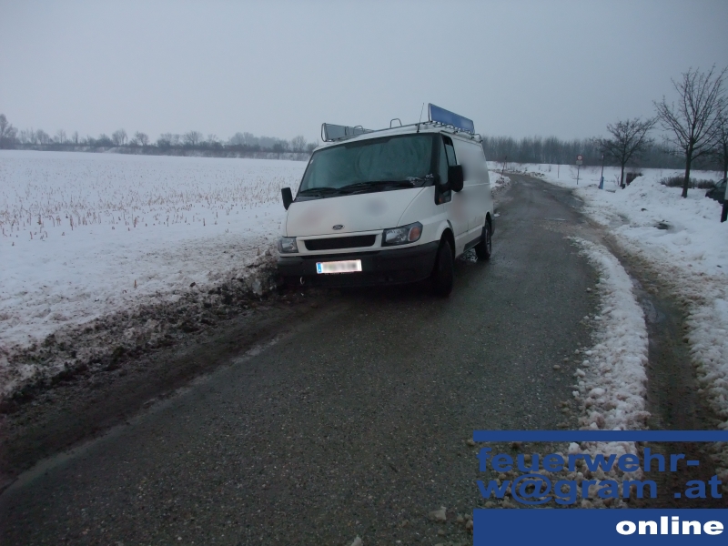 Kurz nach 07:00 Uhr wurde die FF St.Pölten-Wagram am Dienstag den 26. Februar zu einem technischen Einsatz alarmiert. Ein Lieferwagen steckte am Straßenrand im aufgeweichten Bankett fest.