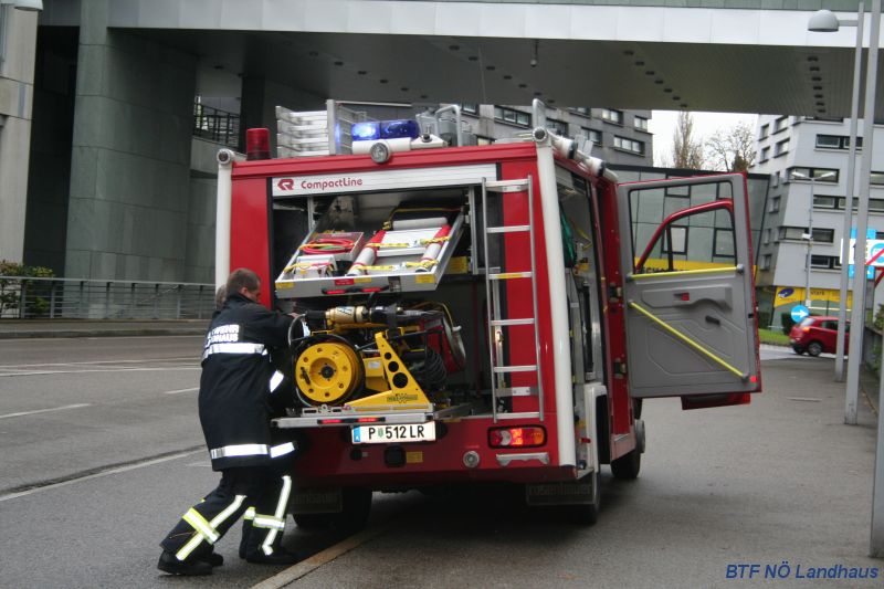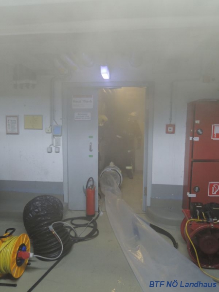 Die Betriebsfeuerwehr Nö Landhaus und FF St.Pölten-Stadt wurden um 10:15 Uhr zu einem Brandmeldealarm im Haus 15 des Nö Landhauses alarmiert. Bei der Erkundung der ersteintreffenden Einsatzkräfte wurde starke Rauchentwicklung in einem Technikraum im Kellergeschoss wahrgenommen. Ein Atemschutztrupp marschierte umgehend mit einem tragbaren CO2-Feuerlöscher in den Brandraum ein, zeitgleich rÜstete sich der zweite Trupp mit Löschleitung und Wärmebildkamera aus um zu unterstÜtzen.