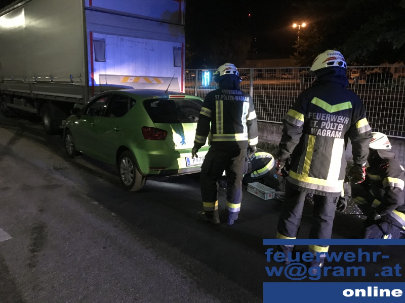 In der Nacht auf Sonntag kam es in der Landeshauptstadt zu einem spektakulären Unfall, der jedoch ohne nennenswerten Personenschaden geendet hat. "PKW steckt unter LKW", war in der Alarmierung fÜr die FF St. Pölten-Wagram zu lesen. Auf der Anfahrt mussten die Helfer also mit allem rechnen.