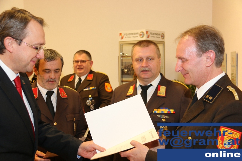 Der Kommandant der zweitgrößten St.Pöltner Feuerwehr, Hauptbrandinspektor Leopold Lenz berichtete Über ein arbeitsintensives Jahr. Insgesamt 208 Einsätze, 73 Übungen, diverse Veranstaltungen und Sitzungen forderten den persönlichen, unentgeltlichen Einsatz aller Mitglieder. In Summe wurden [b]18.526 Arbeitsstunden[/b] freiwillig geleistet. „Nur gemeinsam, als ein starkes Team, ist es möglich all diese Aufgaben zu meistern“, so Kommandant Lenz.
