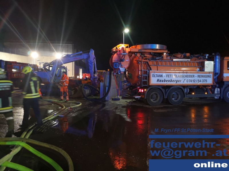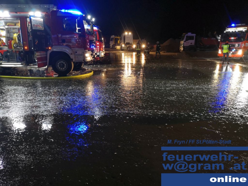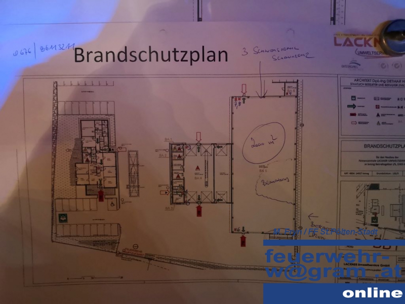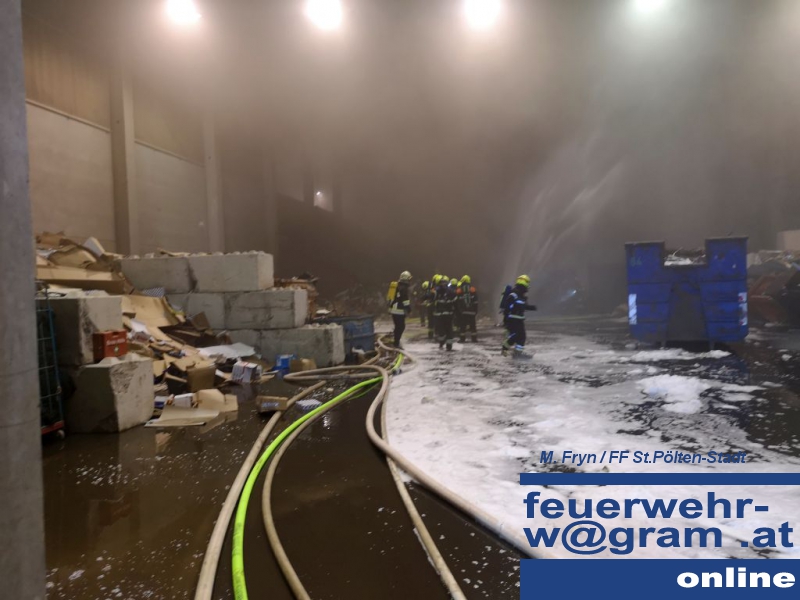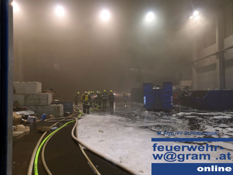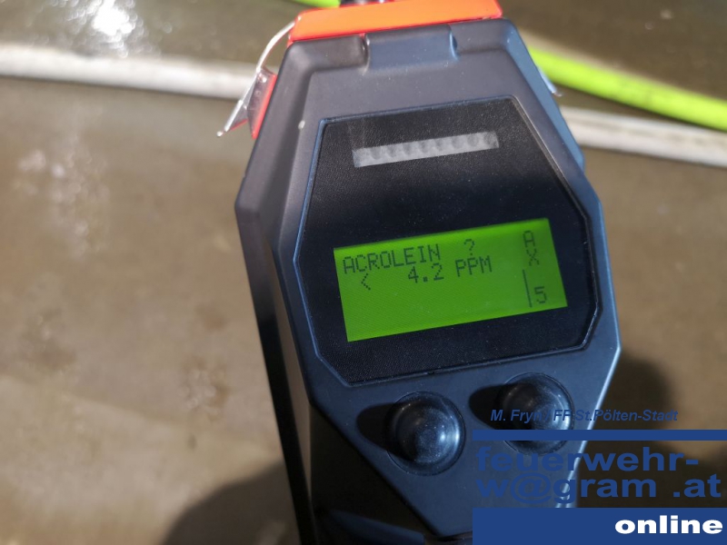 Da jedoch in der Anfangsphase nicht bekannt war, ob nicht auch Sonderabfälle in der Halle, die in Brand stand, gelagert wurden, wurde der Schadstoffberatungsdienst des Nö Landesfeuerwehrverbandes angefordert. Darauf hin wurden Mateusz Fryn ([link=http://www.feuerwehr-stpoelten.at]FF St.Pölten-Stadt[/link]) und unser Kamerad, Markus Steininger, verständigt, um Gefahrstoffmessungen durchzufÜhren.