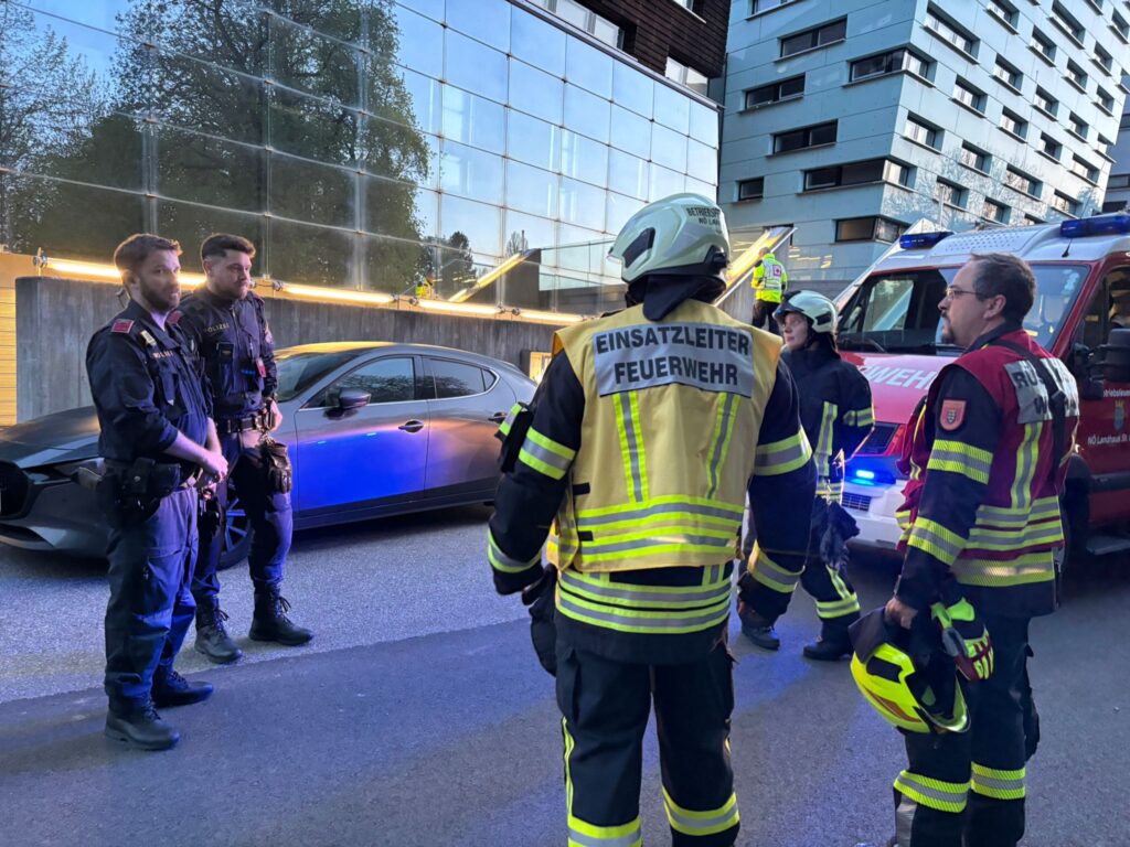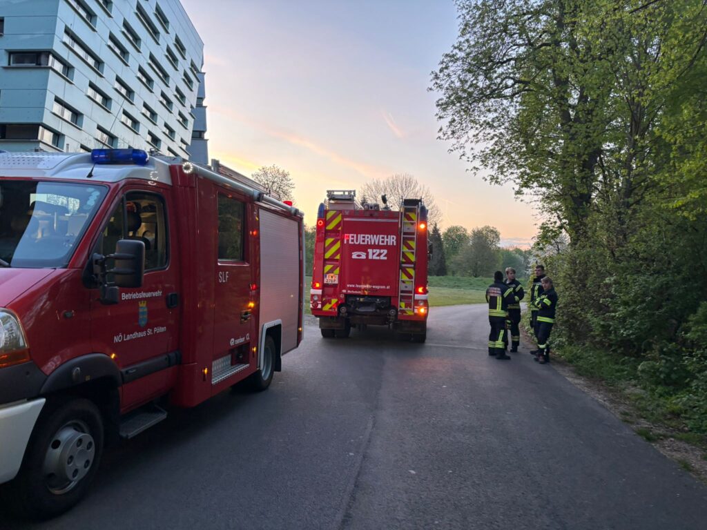 Halb 6 Uhr früh am Sonntag, 19. April 2026 – normalerweise liegt man um diese Zeit noch im Bett und dreht sich nochmals gemütlich um. Allerdings nicht, wenn man bei der freiwilligen Feuerwehr ist… Eine automatische Gefahrenmeldeanlage hatte im NÖ Regierungsviertel einen vermeintlichen Ammoniak-Austritt gemeldet. Daraufhin wurde die FF St. Pölten-Wagram gemeinsam mit der Betriebsfeuerwehr NÖ Landhaus (örtlich-zuständig) und der FF St. Pölten-Stadt zum Schadstoffeinsatz alarmiert.