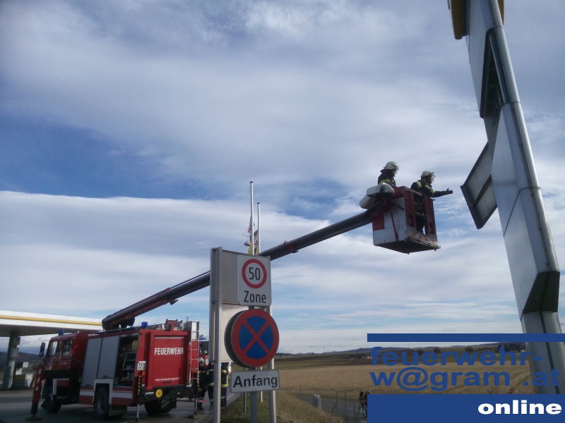 Bei einigen Feuerwehrleuten stand schon das Mittagessen bereit, als kurz vor 12 Uhr die Pager auslösten und sie zu einem Einsatz riefen. Der Sturm "Felix", der schon in weiten Teilen Niederösterreichs fÜr Einsätze sorgte, wÜtete auch bei der Tankstelle auf der S33.