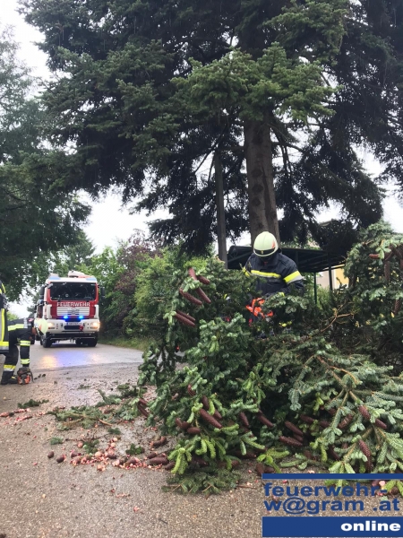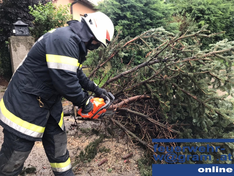 Sturmschaden in St. Pölten-Wagram: Feuerwehr hilft mit Motorsäge aus