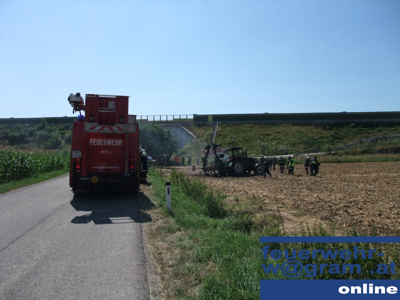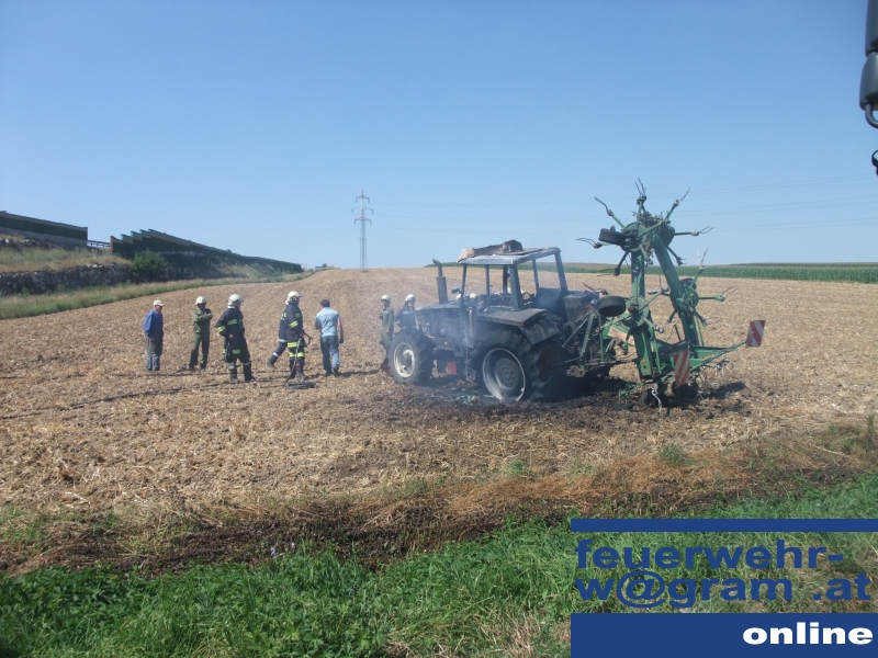 Die Feuerwehr St.Pölten-Wagram wurde am 23.07.2013 zu einem Fahrzeugbrand zwischen Egelsee und Obertiefenbach alarmiert. Beim AusrÜcken des ersten Fahrzeuges wurde Über Funk bekannt gegeben, dass es sich um einen brennenden Traktor handelt.
