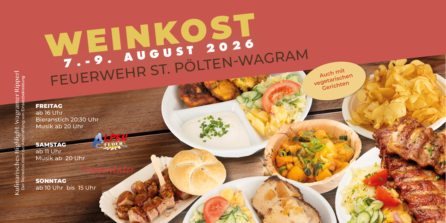 mit großer Freude möchten wir Sie herzlich zur Weinkost der FF St. Pölten-Wagram einladen, dem traditionsreichsten und größten Feuerwehrfest der Stadt. Vom 7. bis zum 9. August erwartet Sie ein unvergessliches kulinarisches Erlebnis auf dem Vorplatz unseres Feuerwehrhauses in der Wienerstraße 70.