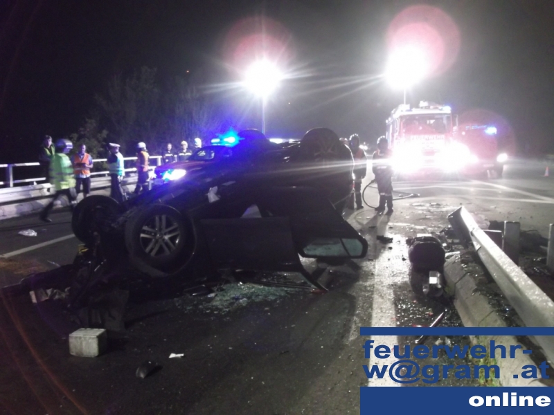 Verkehrsunfall in der Nacht auf Montag – PKW auf Dach auf der S33