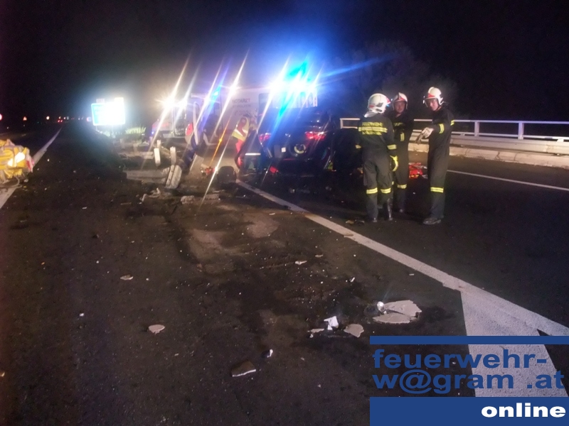 Der Lenker eines PKW mit Korneuburger Kennzeichen rammte mit seinem Fahrzeug den Fahrbahnteiler zwischen der Auffahrt von der S33 auf die A1 Richtung Salzburg und Richtung Wien am Knoten St.Pölten.