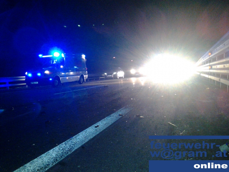 In der Nacht von Freitag auf Samstag kam es zu einem Verkehrsunfall auf der Kremser Schnellstraße S33. Da ersten Meldungen zu Folge mit einer eingeklemmten Person zu rechnen war, wurde vom diensthabenden Disponenten Alarmstufe 2 ausgelöst, weshalb neben der FF St.Pölten-Wagram auch die Kameraden der FF St.Pölten-Stadt alarmiert wurden.